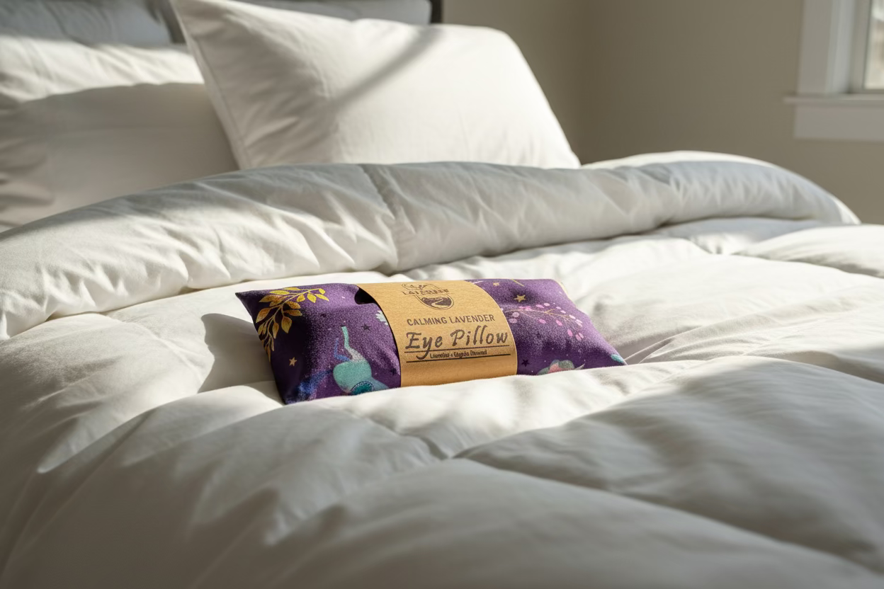 Unwind with the calming scent and gentle weight of our Lavender Eye Pillows, crafted to soothe the senses and support relaxation. Each pillow is filled with a blend of dried English lavender buds and organic flax seeds, encased in a soft cotton inner pillow. A removable outer cover makes them easy to keep fresh, while the gentle pressure helps block out light, release tension, and encourage restful sleep.